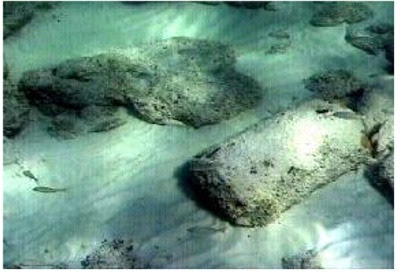 Littered on the surface of the breakwater are dozens of cement and fluted marble cylinders identical to those at Bimini. It is not being suggested here that the Bimini formation was a Roman harbor, only that the construction techniques used at Bimini were also employed in the construction of ancient Mediterranean harbors.